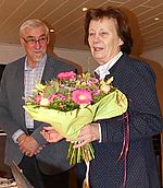 Nach einstimmiger Entlastung des Vorstands durch die Versammlung bedankte sich der Geschäftsführer Otto Drosson mit einem Blumenstrauß bei Brigitte Olschewski, die nach 17 Jahren ihr Amt als Vorsitzende aus privaten Gründen aufgab. In einer kurzen Laudatio hob er ihr Engagement hervor und erinnerte an das Geschick, mit der sie den Verein geleitet hat.