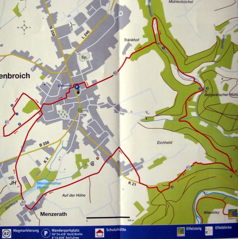Die Wanderkarte Nr. 3 „Monschauer Land - Rurseengebiet“ des Eifelvereins bietet Ihnen eine zusätzliche Orientierungsmöglichkeit.